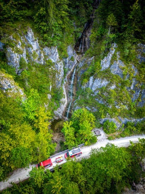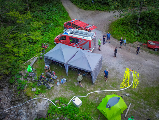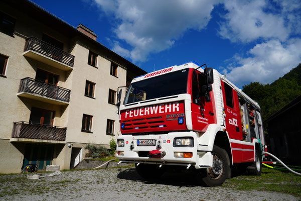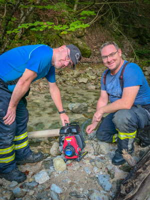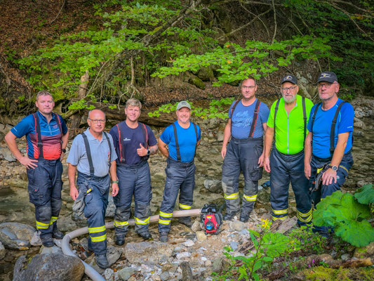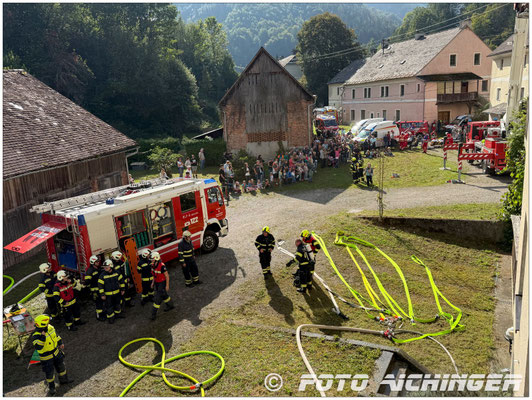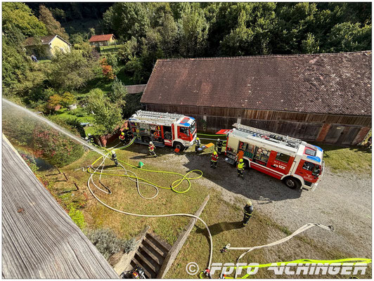 Die Mannschaft des Löschfahrzeuges (LFB) Reichraming stellte die Wasserversorgung aus dem naheliegenden Reichramingbach sicher und legte eine 150m lange Versorgungsleitung zum Tanklöschfahrzeug und Rüstlöschfahrzeug.