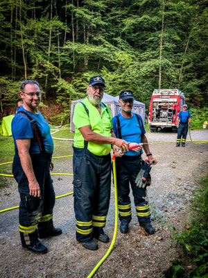 Neben den verschiedenen Handwerkzeugen wie Feuerpatsche, Wiedehopfhacke, Feuerwehraxt, Wärmebildkamera, usw. wurde aber vor allem mit unseren Waldlöschschläuchen und den dazugehörigen HS- Strahlrohren geübt.