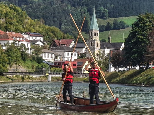 Intensiv geübt wurde auf der Enns, wo das Fahren durch Richtungstore, als Herausforderungen hinzu kam. Auch die Abwechslung als Steuer- oder Kranzlmann waren teilweise herausfordernd.