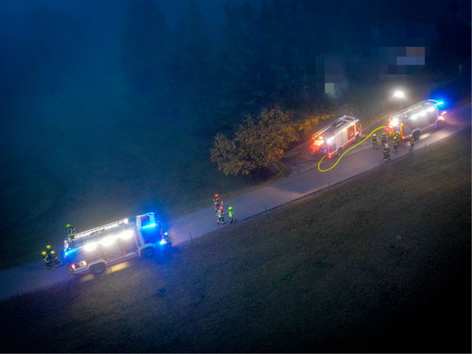 Das erst eintreffende Tanklöschfahrzeug (TLF) der Feuerwehr Reichraming, eingewiesen von der Polizei stellte umgehend einen Atemschutztrupp, welcher mit der Personensuche und den Löschangriff beauftragt wurde. Wenige Minuten später traf auch das Rüstlöschfahrzeug (RLF) der Feuerwehr Losenstein ein und wurde ebenfalls mit einem Atemschutztrupp zur Personensuche beauftragt.