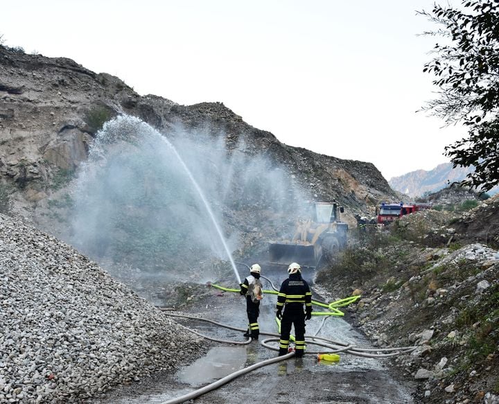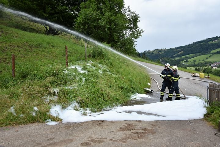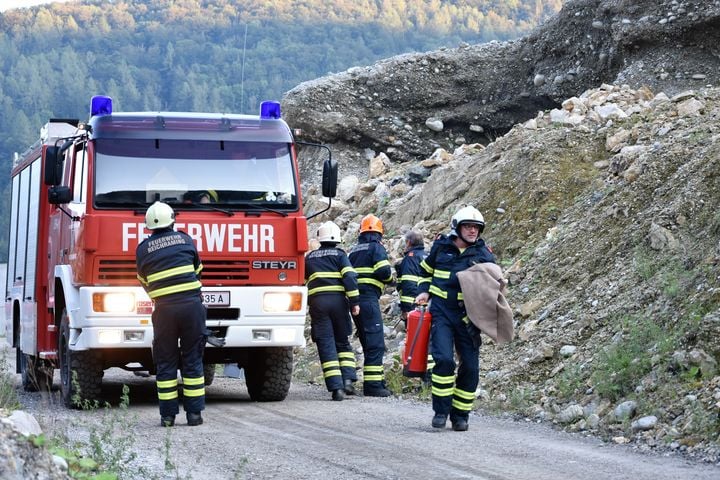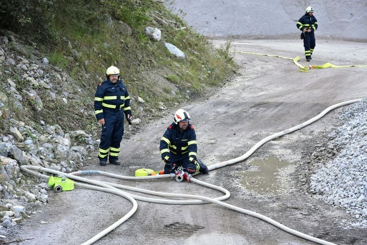 Ein Hydroschild wurde zur Sicherung der Verletzten Person, der Rettungsmannschaft und des Radladers in Stellung gebracht. Nach Errichtung der Wasserentnahmestelle und Herstellung der Löschwasserleitung konnte auch der Brand sehr rasch bekämpft und gelöscht werden.