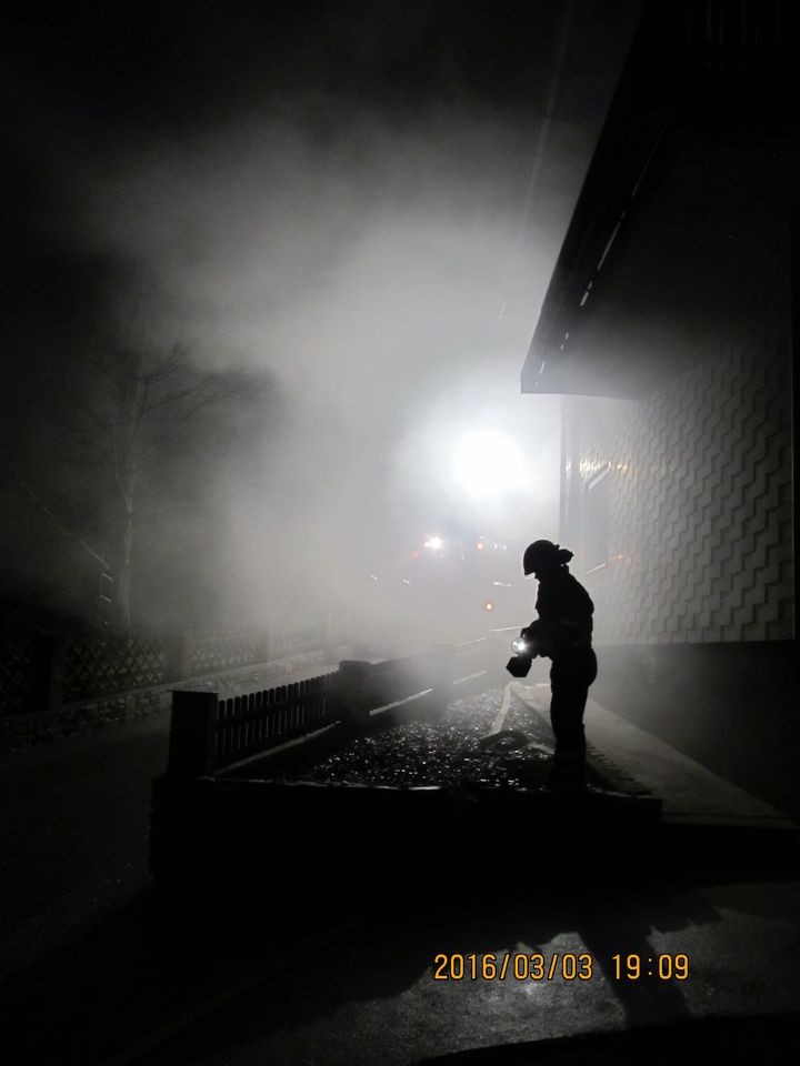 Die Übungsannahme war Brand im Heizhaus eines Einfamilienhauses mit einer vermissten Person!