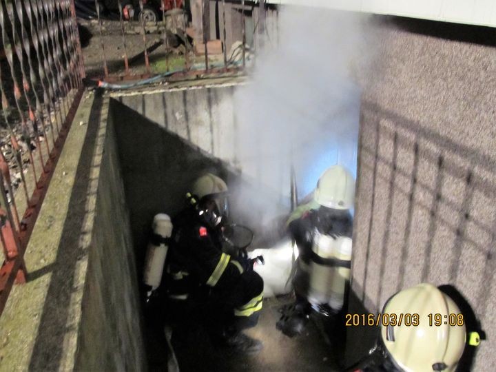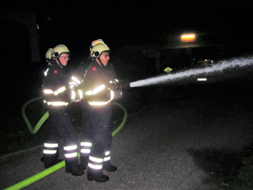 Bei dieser Übungsannahme wurde der Umgang mit dem schweren Atemschutzgerät geübt! Der Atemschutztrupp hatte die Aufgabe in den verrauchten Keller zum Heizraum mit Hochdruck Vorzudringen und dabei vordringlich die vermisste Person zu finden um sie zu Retten und anschließend die Brandbekämpfung durchzuführen. Das Löschwasser wurde aus einem in der nähe befindlichen Hydranten entnommen. Ebenso wurde, um das Vordringen des Atemschutztrupps zu erleichtern, mit dem Hochleistungslüfter der Keller vom dichten Rauch befreit. Die Übung wurde positiv beendet.