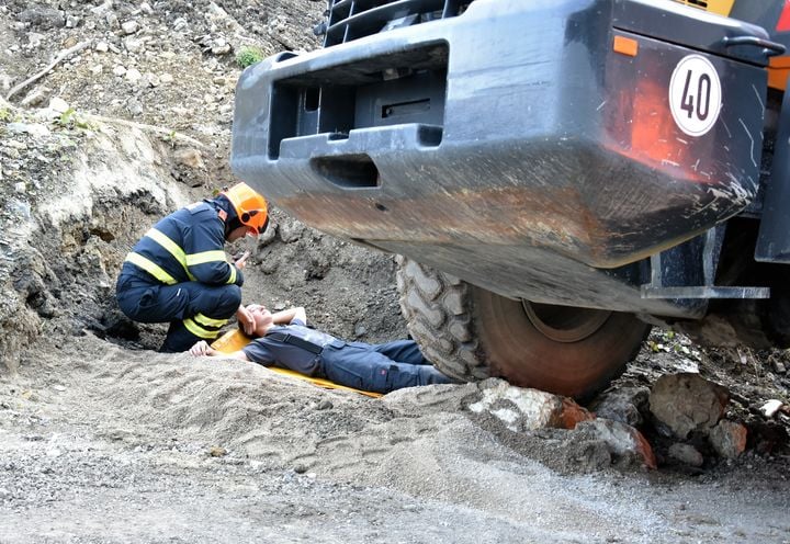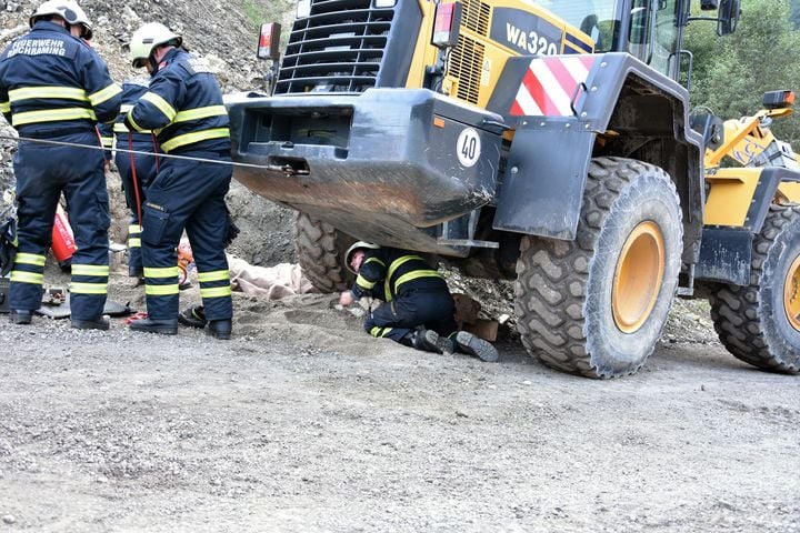 Übungs-Alarmierungstext: Personenrettung, Unfall mit Baufahrzeug, eingeklemmte Person.