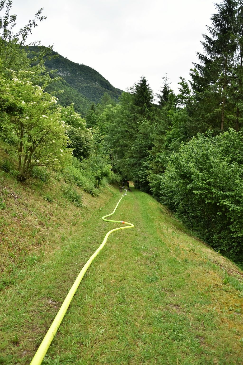 Ein großes Ziel dieser HÜ war diesmal die Überprüfung der Löschwassermenge in einem offenen Löschteich der Familie Brandner vulgo Hamberg in der Nähe der ehemaligen Lifttrasse zur Hohen Dirn.