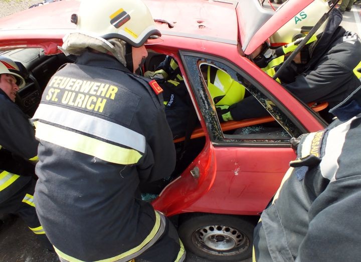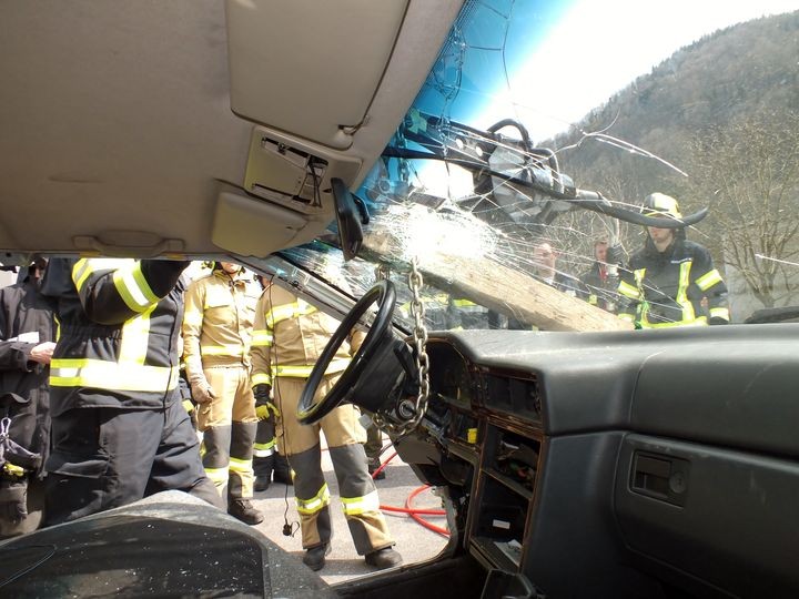 Am Nachmittag wurden dann die in der Theorie vom Vormittag erhaltenen Informationen Realitätsnah an Personenkraftwagen überprüft und mit den neuesten Rettungsgeräten der Fa. WeberRescueSystems erfolgreich, angeleitet durch die Instruktoren BI Niederhofer Robert, HAW Havelka Rene, OAW Achleitner Martin und AW Fahrngruber Thomas, geübt!