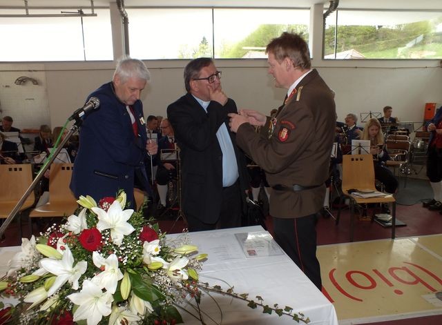 Die Ehrenmedaille für 50jährige Mitgliedschaft bei der FF erhielten: OBM Bichler Josef, E-HBI Kerbl Fritz und BM Koppenberger Albert sen.