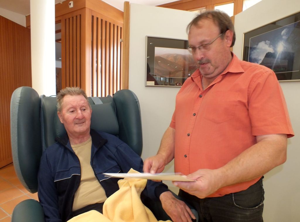 E-HBI Salcher Alois lebt wegen seiner Krankheit seit ca. 3 Jahren im Bezirksseniorenwohnheim in Bad Hall. Alois freute sich sichtlich über den Besuch der ehemaligen Kameraden und